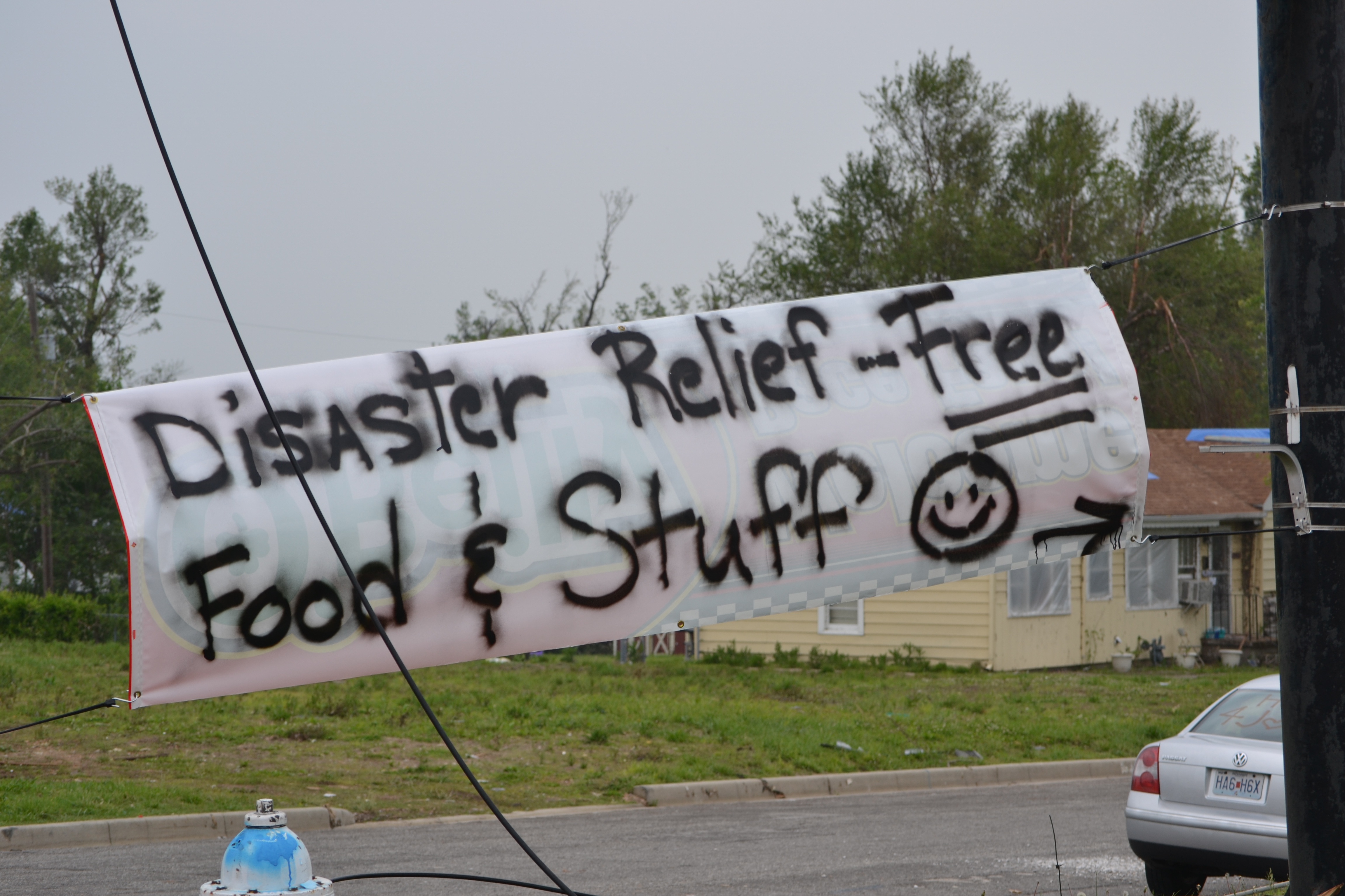 We watched every moment of news coverage for days after that. We connected with friends there through facebook and determined their immediate needs. We were able to pull a few things together for them, with the help of friends & family, and our kids delivered the items. They didn’t ask for much, Rubbermaid totes (for salvaged items), water, snacks, gloves, tape, markers. Driving on I-44 through Joplin that first Saturday after, you could see crumbled disarray everywhere. On Rangeline Road, if it wasn’t gone, it was broken. There were MASH like tents set up and everywhere you looked, people were offering food, clothing, water and more with big signs that said “FREE”. Joplin had pulled together. Neighboring towns and states were jumping in….giving Joplin people help and hope.