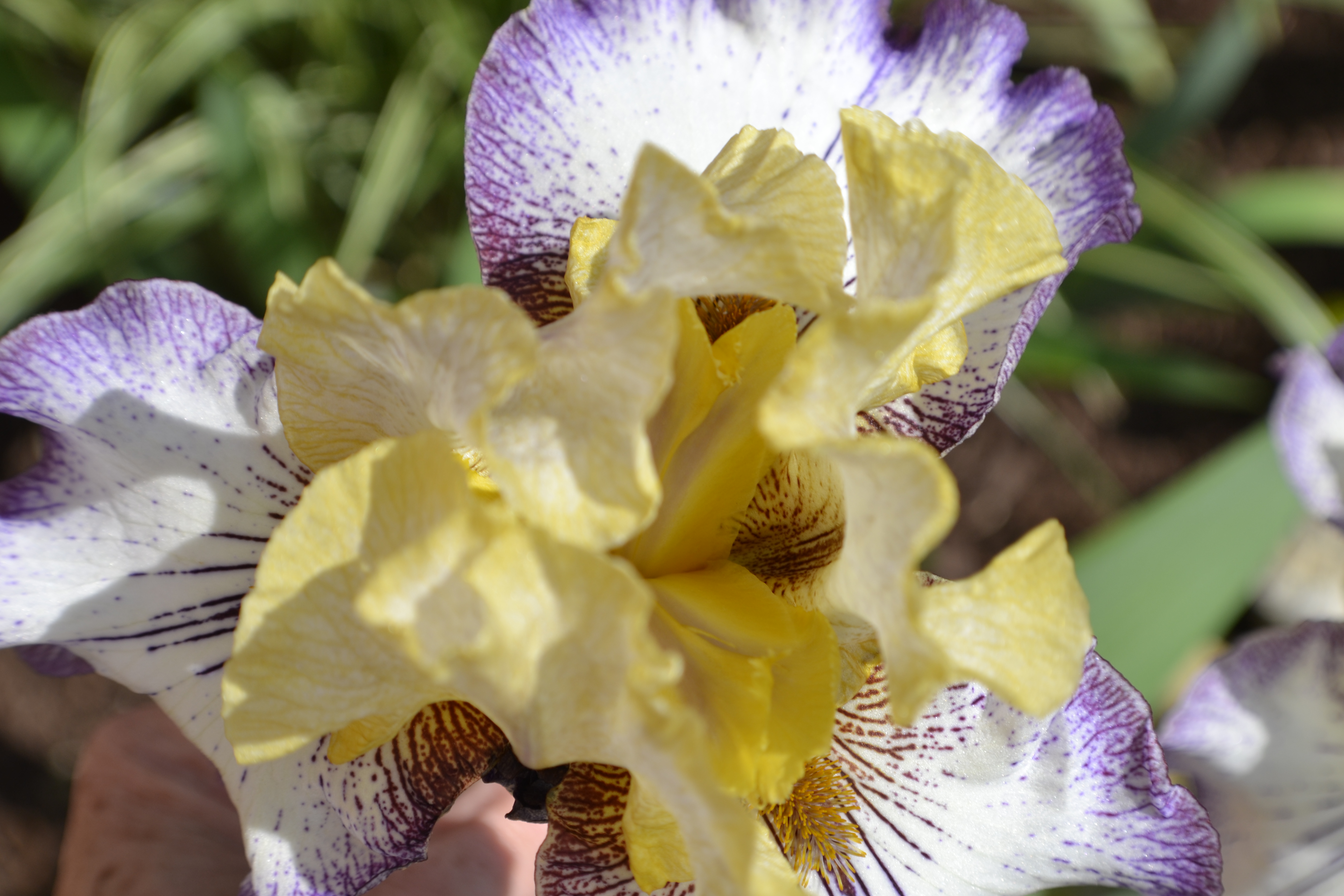Iris Bloom Reveal!!!And so is the Iris!  Three great big beautiful blooms!  I reviewed the “guesses” of our flower color and there was no exact guess, as this is an unusual color mix.  My “executive” decision (I’ve always wanted to say that! 😉 ) is to go with Delores McElmurry’s guess of white with lavender.  I think every one of you  had a “little” bit of it correct!  I’ll get with Delores.  She has a choice of Sonic gift card, Starbuck gift card or a magazine subscription.  To my other guessers….send me you mailing address and I’ll send you a STUFF I TELL MY SISTER bracelet! (psblaxton@att.net)  Thanks to all for reading STUFF I TELL MY SISTER!!!  You guys are awesome! ♥
