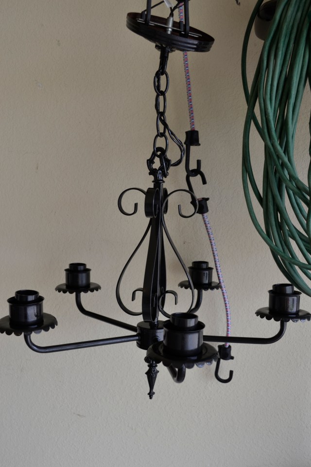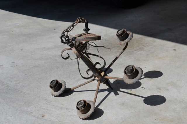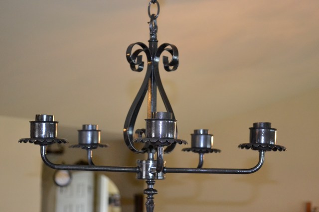 You should have seen hubby’s face when he came back with his truck and the chandelier was in the pile. I think he was relieved when he found out it would not require “rewiring” and that I was leaning towards candles. I love candles, too!