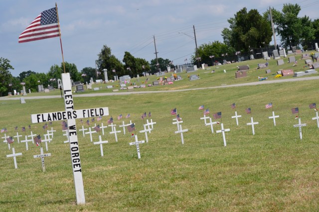 We drove through our local cemetery on Memorial Day and were touched by this display of honor and remembrance.  Lest we Forget ~