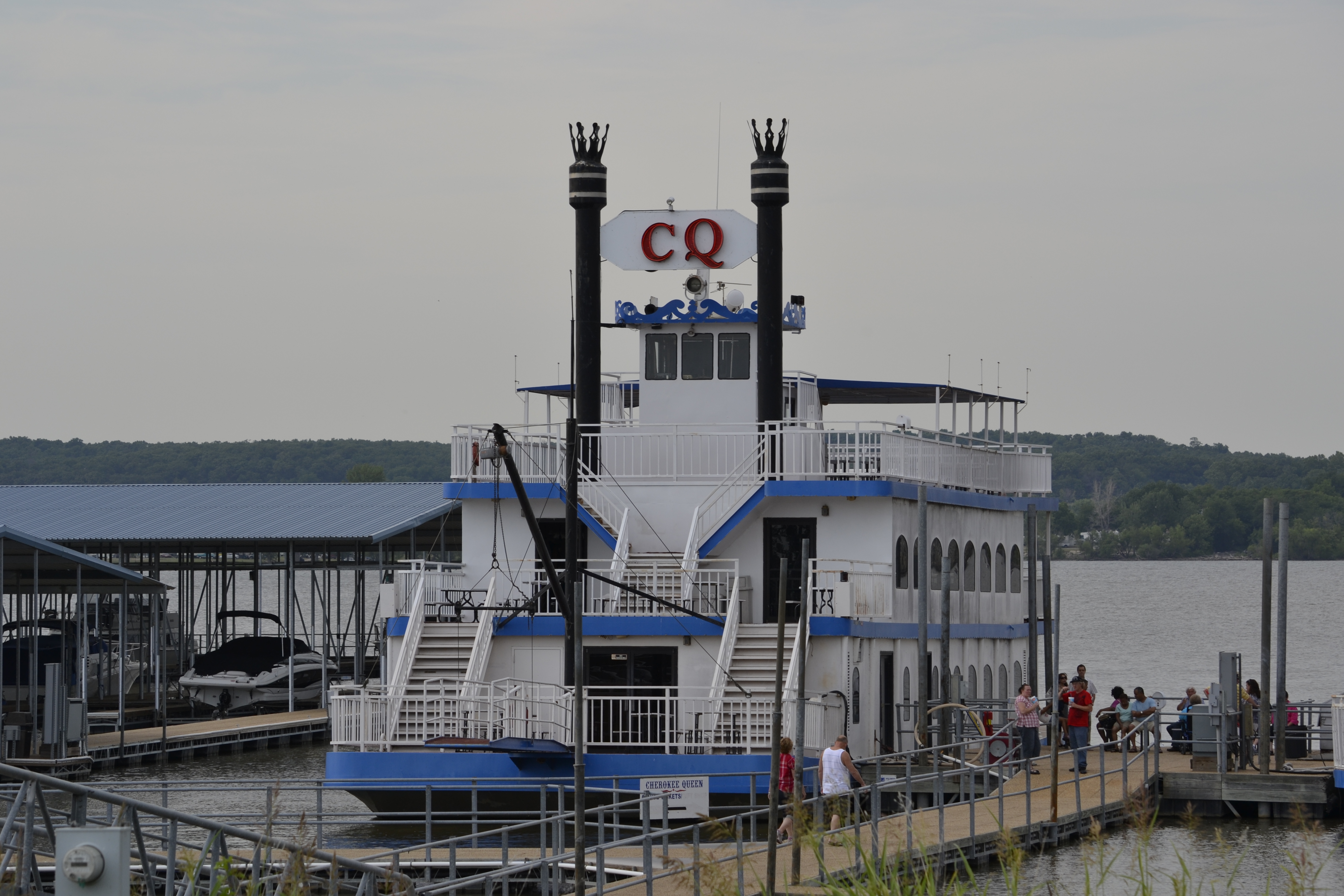 Hubby and I took a mini-trip over the weekend; our final destination being The Cherokee Queen for an evening cruise on Grand Lake.  Of course, we did take the long route, first stopping at The Amish Cheese House for a late, but yummy lunch.  Then after some winding scenic back roads, we arrived in Grove, Oklahoma.  Want some summer lake fun?  Come to Grove!We stayed here when our boys were very young.  A well-kept place and perfect if you wanna fish and let the kids romp and play….(but give me the Holiday Inn Express) ~A fun and friendly place to shop ~Yep ~ I found another chair!  This one for my front porch!It was finally time to board the Cherokee Queen! Be sure to call ahead and make reservations.  You have a choice of a dinner cruise or just a sightseeing tour.  From visiting with some of the employees, we learned that they are in transition to new owners this season. The upper air conditioning was on the blink, but once we got rolling, it didn’t matter.  The cool air from the water was perfect.  Their new liquor license is in the hands of the “state”, so don’t whine I’m talking to me  about “no wine”.  They are “in waiting”.  😉 We loved the two-hour excursion and visiting with other folks on our adventure. (all ages!)  The photo ops were amazing….but be sure your battery has a full charge! like I should have done ~ duh   The captain did a great job, and we appreciated their music selection for the evening.  Perhaps you are like us ~ a little sunset cruise and relaxing is good for the soul ~well then, check it out if you are in this area of Oklahoma.  We would do it again, for sure!And THIS IS WHEN MY CAMERA BATTERY DIED! But that’s okay.  Cause looking at this world without the lens is pretty amazing, too ~