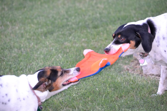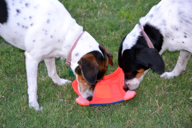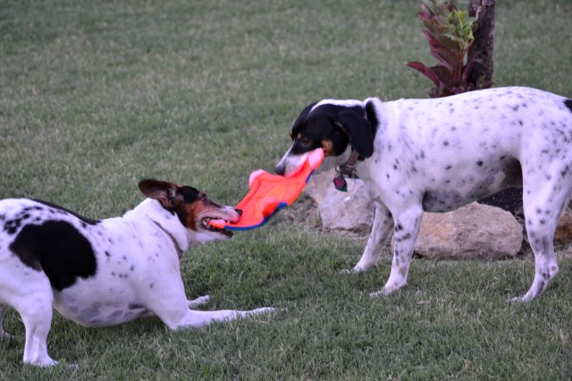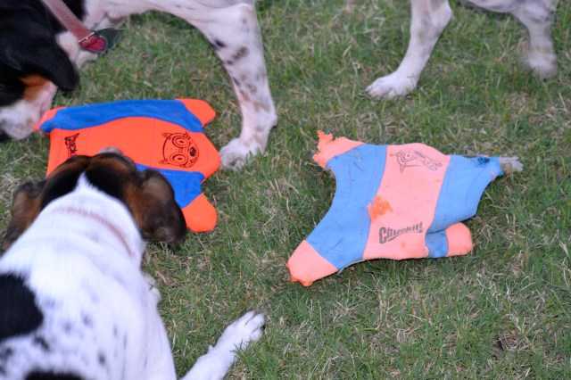 Well, the day finally arrived. It was past time to replace the Flying Squirrel Chuckit for the “girls”. We believe in getting our money’s worth. Mission accomplished ~