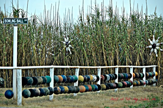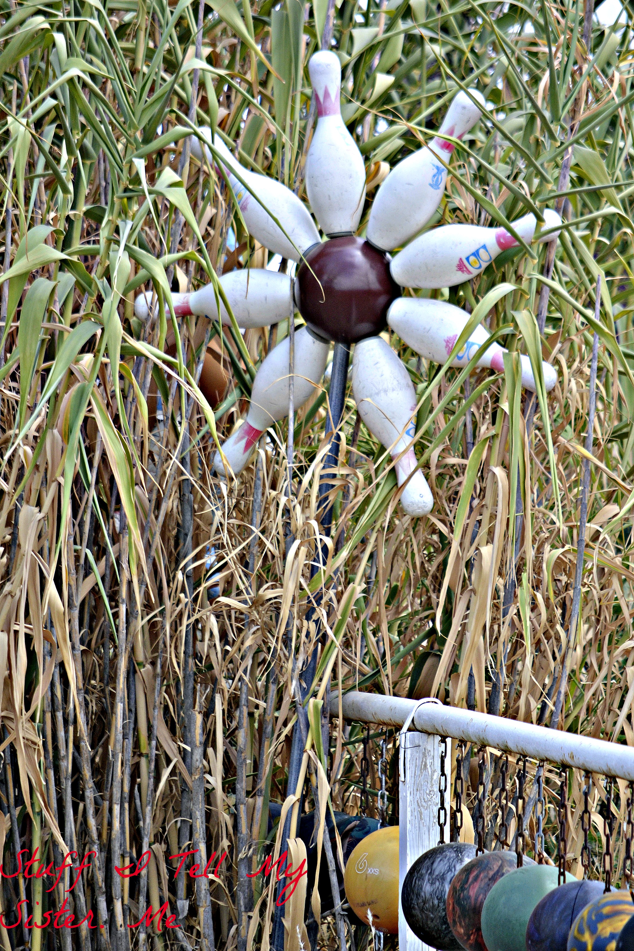 I love reading Stuff My Sister Tells Me, it makes me feel like this is my childhood, my adventure, my road trip . . . Paula’s latest road trip took me to my own repurposing adventures with bowling balls. I have started creating garden gazing balls with these durable castoffs; so naturally, I fell in love with her adventure. Plus, this gave me tons of new ideas to do with these heavy and lasting old balls. I was never a good bowler (cross-eyed and hand/eye coordination doesn’t bode well together), but my parents were avid bowlers. We had more trophies than balls, so I didn’t discover what a treasure these old things were until much later in life!