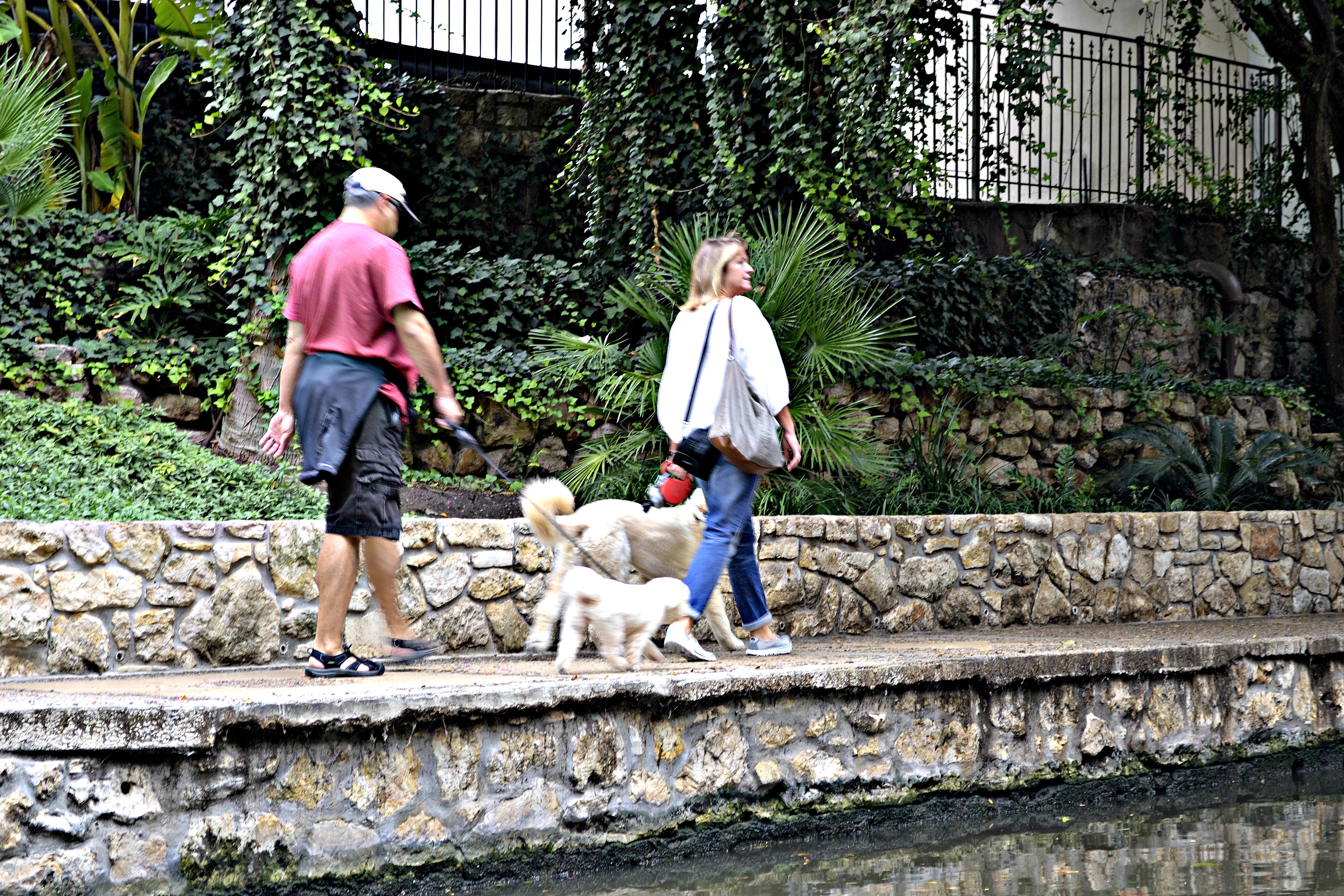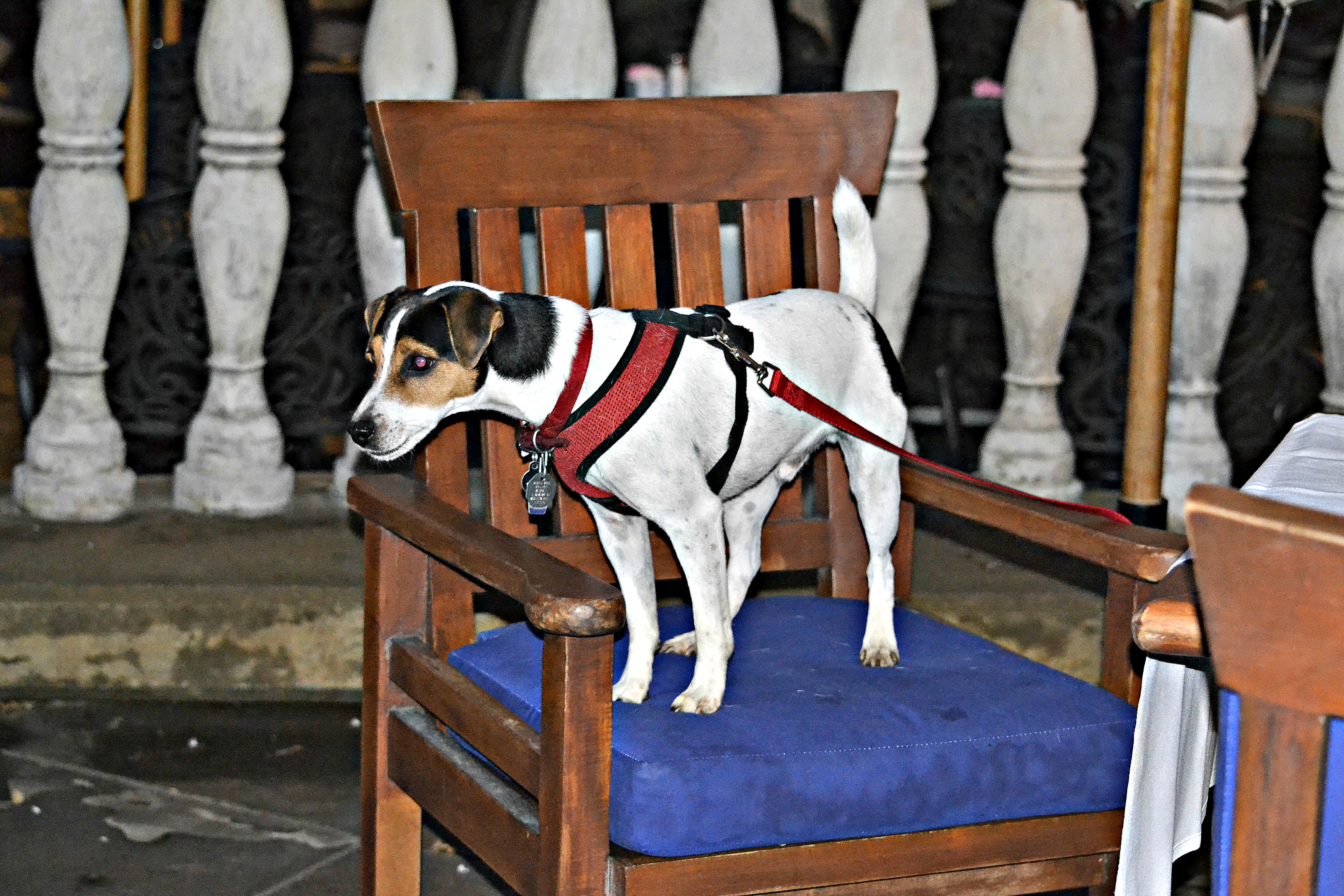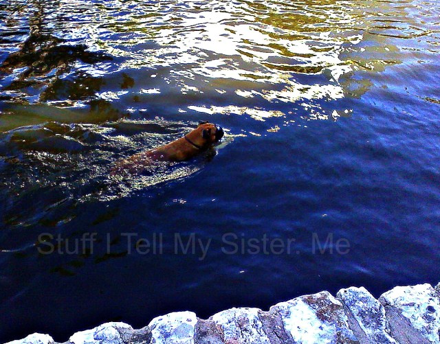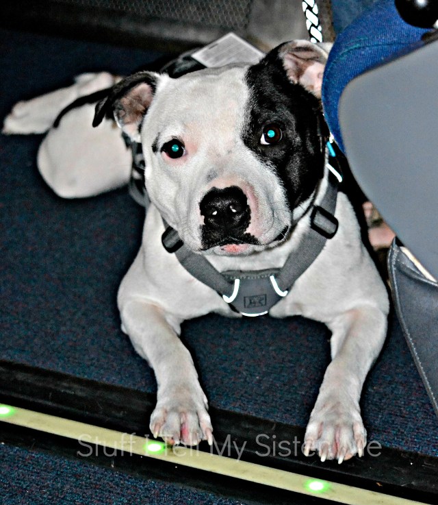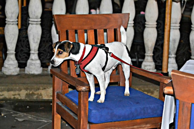 We met many nice folks on our trip last week….but the furry friends were abundant along the way, too.  They were not camera-shy either!Meet Jack.  He rode the train with us to Ft. Worth, Texas.  This was his first train ride and he loved looking out the window.  until he heard my peanut m & m’s open From our water-taxi ~He’s with the pub.  And no, he is not real ~Pepper was enjoying his ice water on the river walk….until he spotted the DUCK!This little guy wasn’t big enough to belly up to the bar, but he had his own chair!This beautiful boxer was exercising and chasing a few ducks. not to worry, he did not get one!   The water taxi told on him…and pretty soon the river walk police arrived.  Fortunately, he swam hard when called and was out of the water and fast.  None of us had seen a thing!These sweet little girls were waiting for us when we got home.  Sugar and Baby ~ They are the best ♥