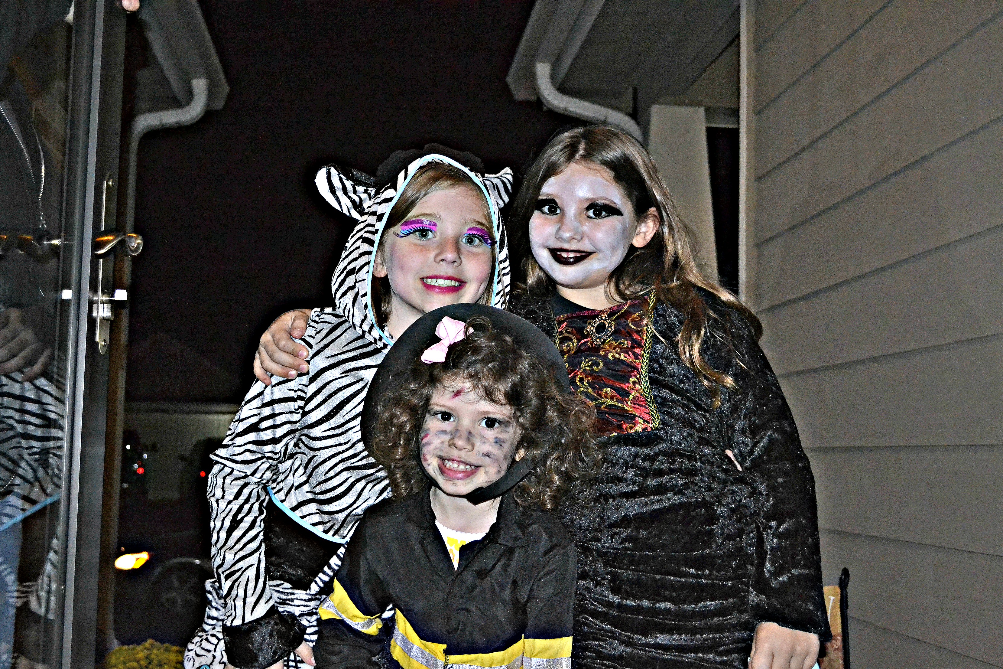 We had visits from many last night for Trick or Treat.Cute little neighbors and friends.Great makeup! Aren’t they adorable?No time for a picture, lady!I told Isaac to smile.  But who knows?The rest of this is going away today!I think they’ve done this before. 🙂Zombies, of course!Superwoman!  Sister to the monster. A few guests were not invited.   They were the creepiest of all!