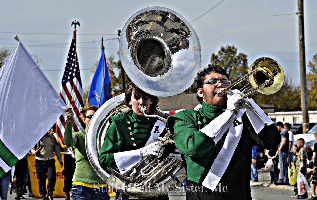 Maybe you recall that yesterday, I shared a pre-parade with you from Saturday. After we left that parade in Owasso, Oklahoma, we headed down old Route 66 toward Adair, Oklahoma. The trees were at peak in color, the temperatures were in the 70’s and with rocks in our pockets, the wind did not slow us down a bit. We passed by the Crooked Little Houseand pecan harvest was taking place. I wanted to stop BUT, we couldn’t be late for the parade!
