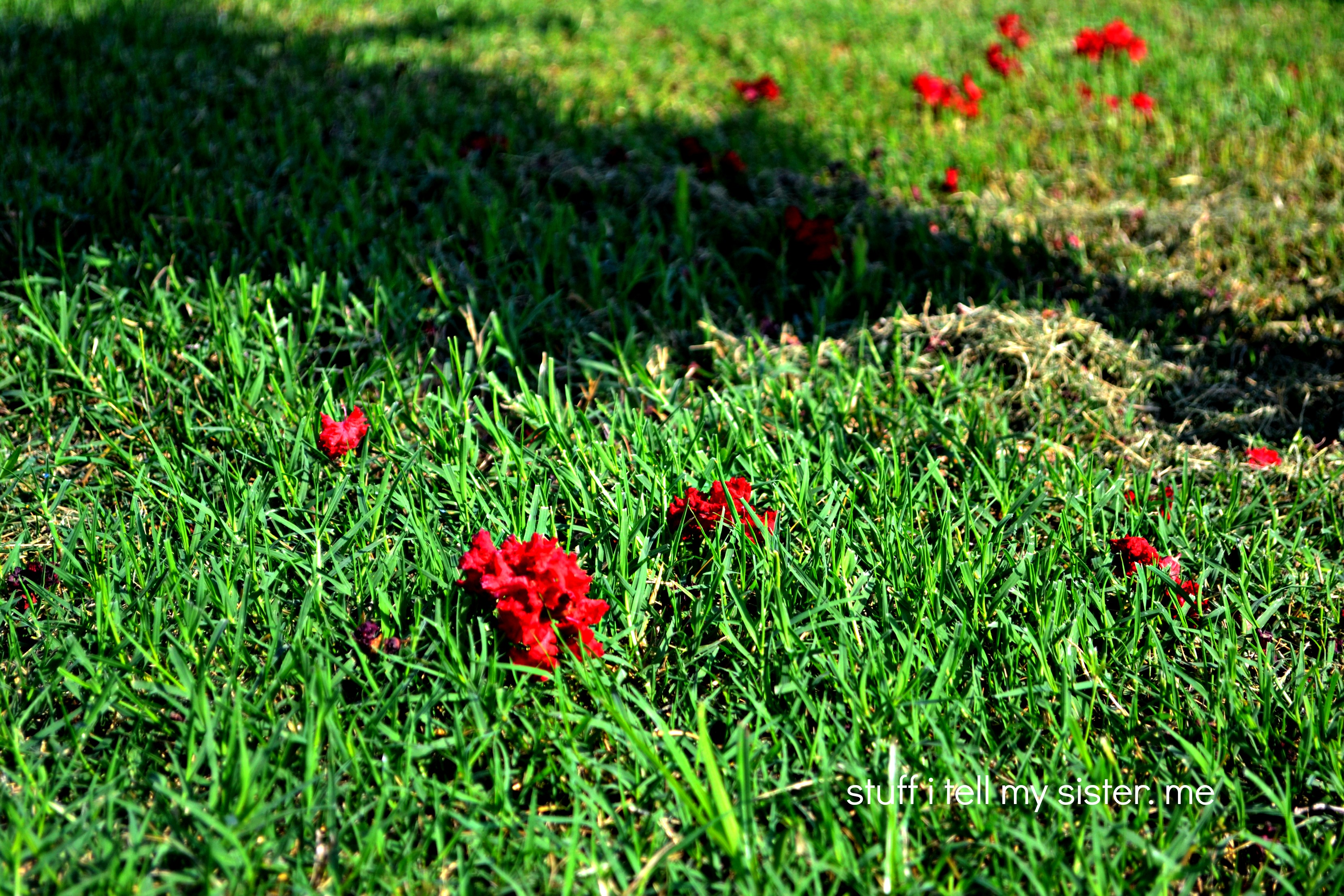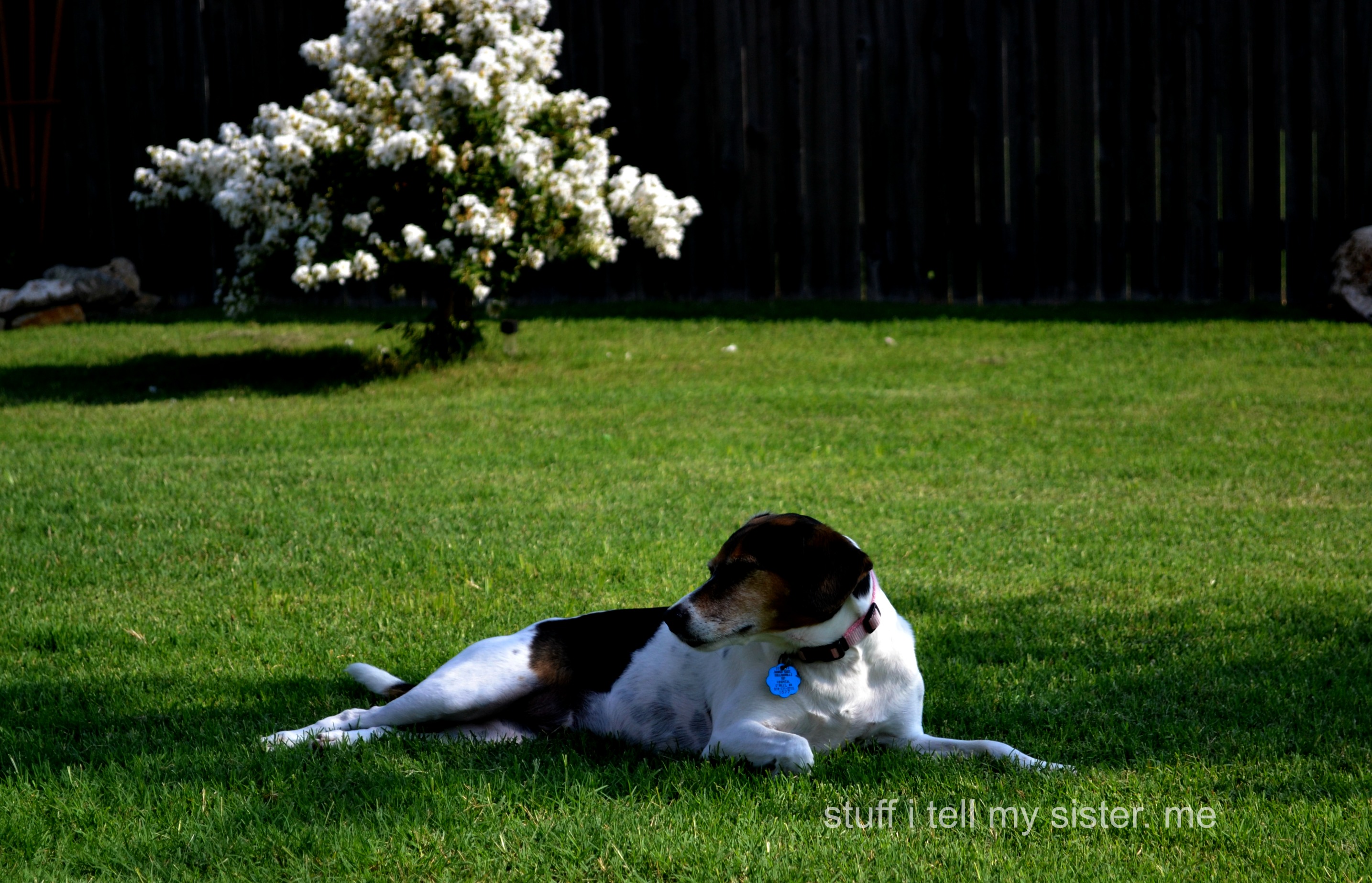 I love to look out on the backyard first thing in the morning. I turned the pups loose a bit ago and as they scampered about…I notice it had rained crepe myrtle blossoms. Crepes myrtles are my favorite flowering tree/bush of all times. They thrive in the heat. Their flowering stems look lovely in an old wine bottle on the front porch. But mostly, they remind me of summertime at Grandma’s house. ♥  Crepes can bring smiles and surprises.  Happy Monday!