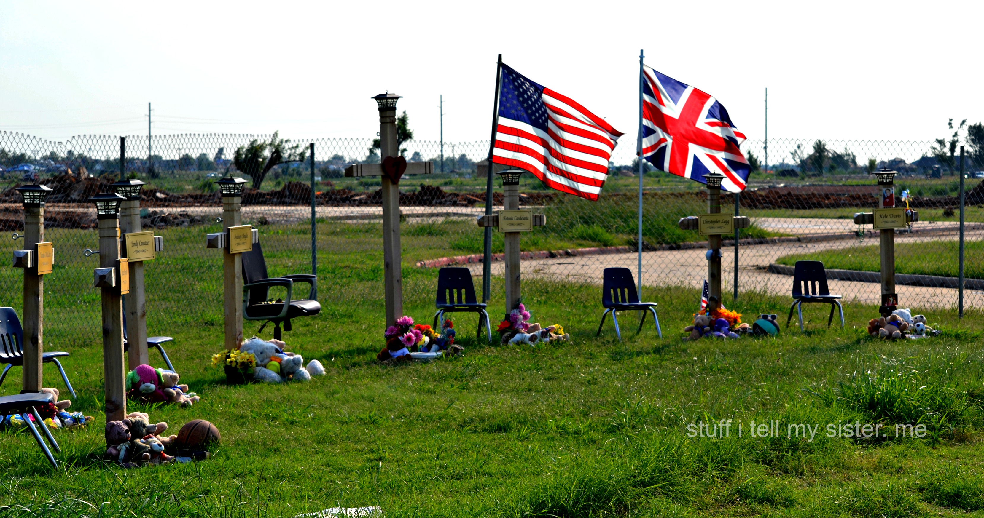 We drove upon the Plaza Towers Elementary School.  There was a television crew filming, as the next day would be the first day back to school for the students and teachers of Moore.  We saw many people coming and going.  License plates from everywhere.  This is a memorial.  Not only to those lost, but to those who must carry on. It is a place to reflect, pray, and remember.