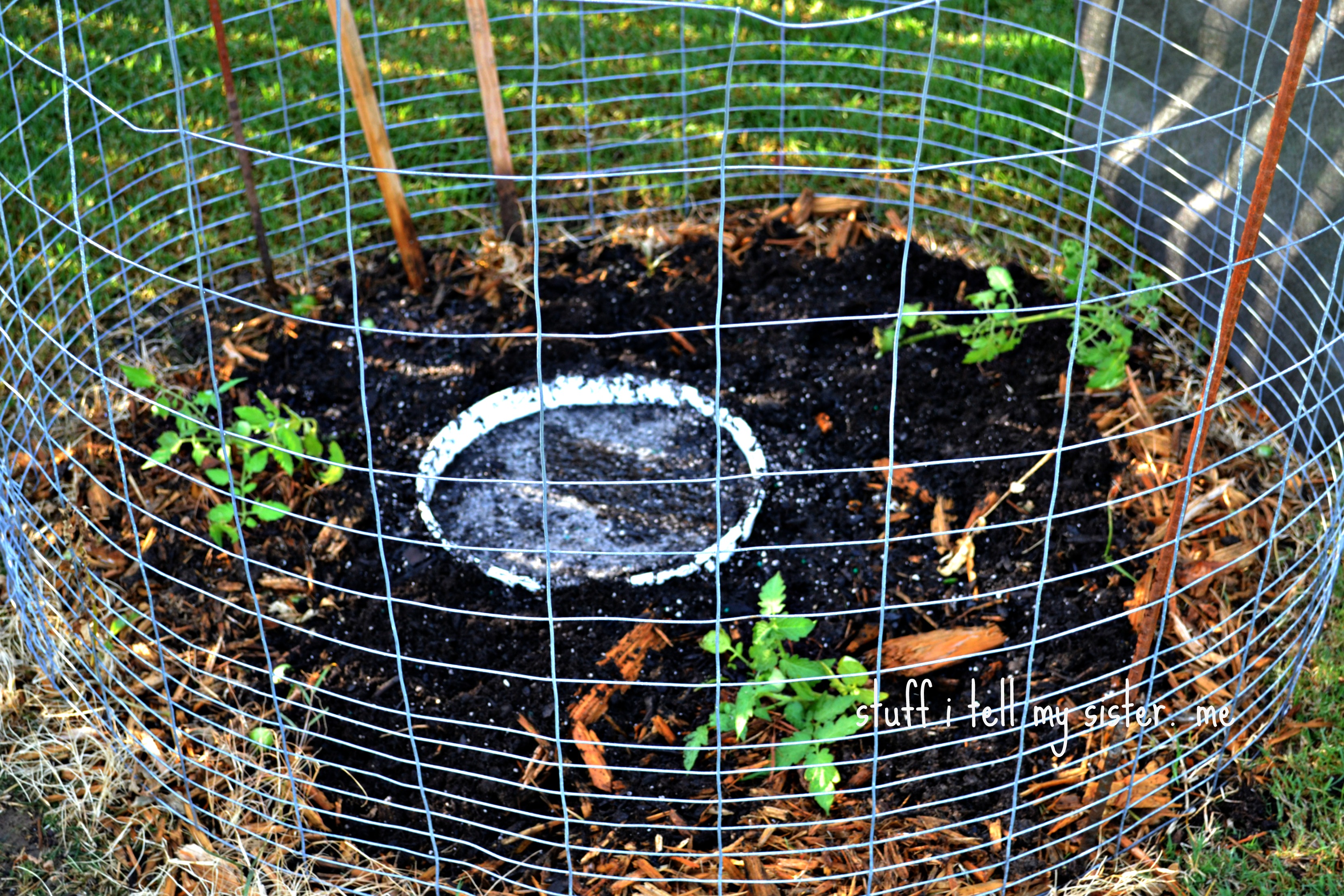A few weeks ago, I posted Growing Maters, to show you a different method for planting tomatoes that would require less work/watering. After hubby planted our eight plants, we took a little trip to mom and dad’s and he did the same thing there for them. Fool proof. Right?