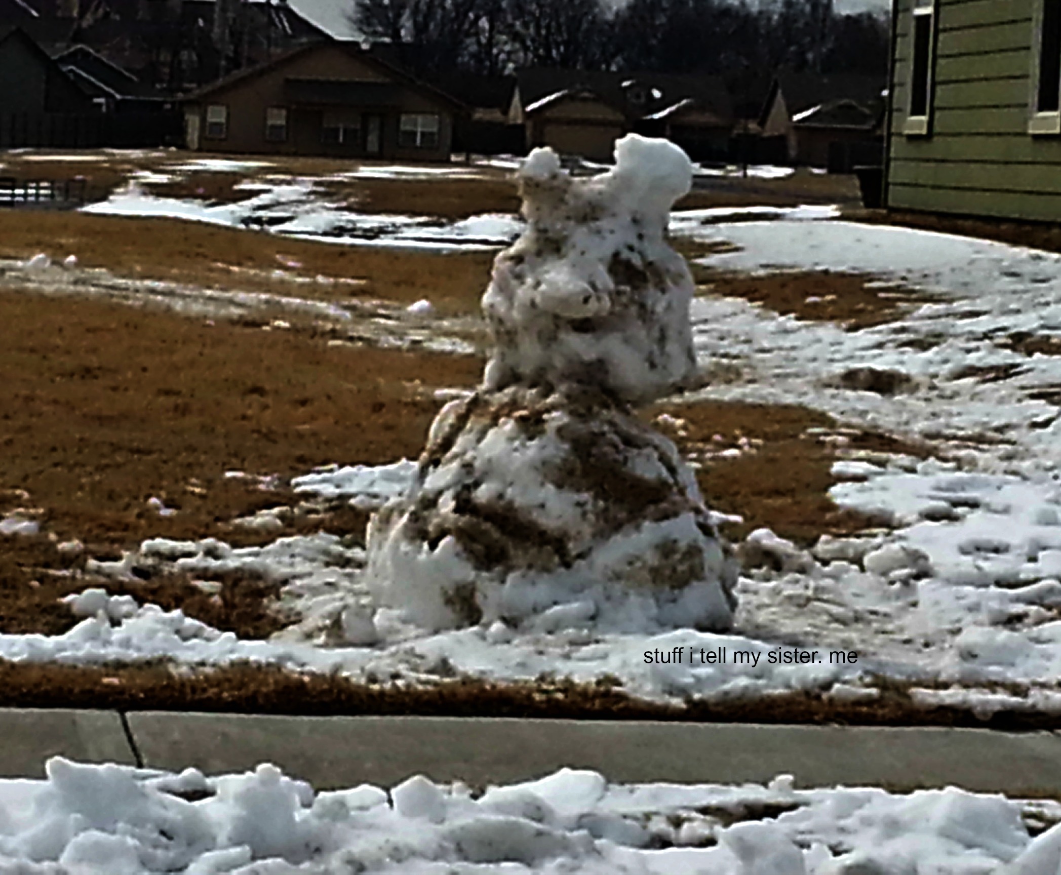 ugly snowman2It is 20 degrees (F) currently in our little town.  The arctic front continues to dip in a little lower for a hello. I would prefer a kinder visit….but hey….we deal with what we get, right?