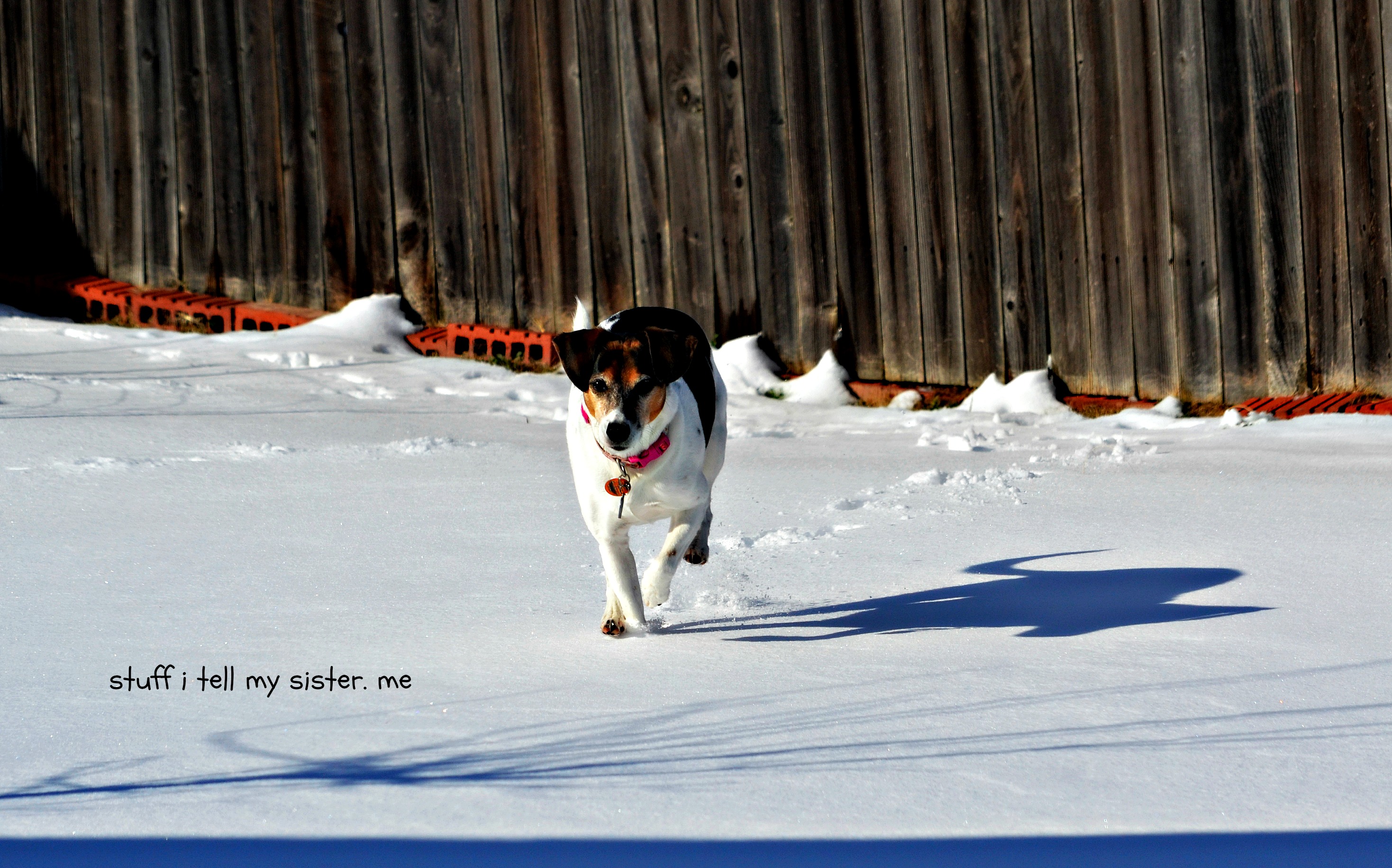 That’s so funny! This one loves to hop the snow for a few minutes. ..then she wants her blanket. (Her name is baby) Her sister? In and out in 2 seconds. Enjoy the snow!!! 🙂